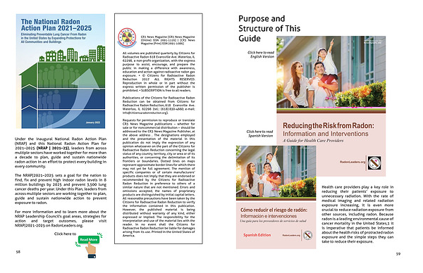 Requests for permission to reproduce or translate CR3 News Magazine publications – whether for sale or for noncommercial distribution – should be addressed to the CR3 News Magazine Publisher, at the above address . The designations employed and the presentation of the material in this publication do not imply the expression of any opinion whatsoever on the part of the Citizens for Radioactive Radon Reduction concerning the legal status of any country, territory, city or area or of its authorities, or concerning the delimitation of its frontiers or boundaries. Dotted lines on maps represent approximate border lines for which there may not yet be full agreement. The mention of specific companies or of certain manufacturers’ products does not imply that they are endorsed or recommended by the Citizens for Radioactive Radon Reduction in preference to others of a similar nature that are not mentioned. Errors and omissions accepted, the names of proprietary products are distinguished by initial capital letters. All reasonable precautions have been taken by the Citizens for Radioactive Radon Reduction to verify the information contained in this publication. However, the published material is being distributed without warranty of any kind, either expressed or implied. The responsibility for the interpretation and use of the material lies with the reader. In no event shall the Citizens for Radioactive Radon Reduction be liable for damages arising from its use. Printed in the United States of America.
