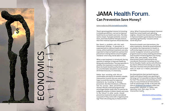 But there’s a problem with this well- intentioned thinking. If prevention is expected both to improve health and to save money, while traditional treatments are only expected to improve health (at a price), then prevention is being held to a much tougher standard—one it may not be able to meet.