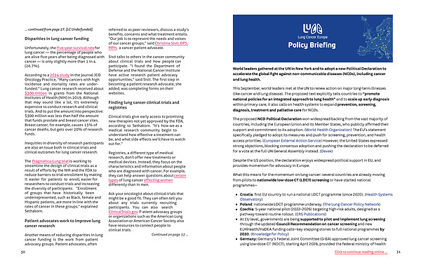 Inequities in diversity of research participants are also an issue both in clinical trials and clinical outcomes for lung cancer research.