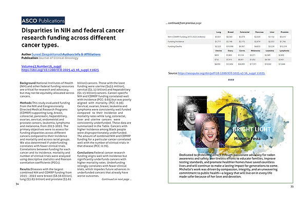 Background: National Institutes of Health (NIH) and other federal funding resources are critical for research and advocacy, but may not be equitably allocated across cancers.