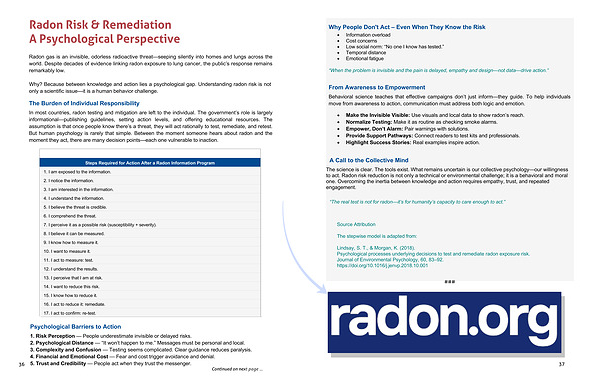 Why? Because between knowledge and action lies a psychological gap. Understanding radon risk is not only a scientific issue— it is a human behavior challenge.