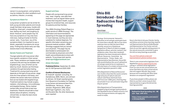 Buckeye Environmental Network’s education on oil and gas waste goes back for more than a decade. We’ve even done webinars here on Halt the Harm! Most recently, we put on a Statehouse Symposium in March of 2025 to engage legislative offices, activists, workers, and academics alike. Since then, landmark legislation has been introduced in Ohio’s Natural Resources Committee by Representative Tristan Rader and Representative Sean Brennan. House Bill 439 would disallow the use of radioactive oil and gas waste brine on roadways in Ohio by means of a simple strikeout of the archaic legislation passed in 1985.