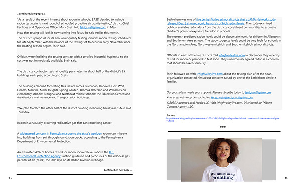 “ As a result of the recent interest about radon in schools, BASD decided to include radon testing in its next round of scheduled proactive air quality testing,” district Chief Facilities and Operations Officer Mark Stein told lehighvalleylive. com in May.