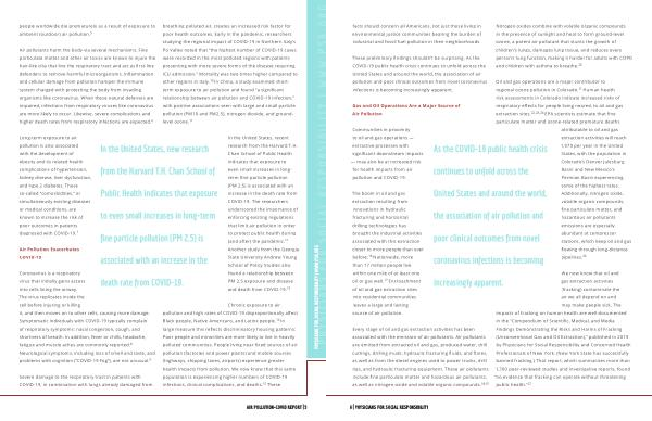 Communities in proximity to oil and gas operations — extractive processes with significant downstream impacts — may also be at increased risk for health impacts from air pollution and COVID-19 .