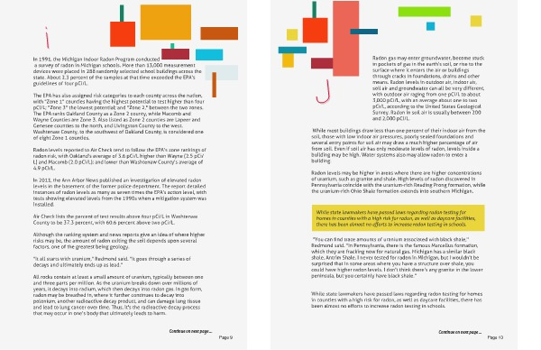 of uranium, such as granite and shale. High levels of radon discovered in