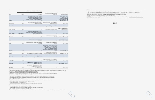 For more detailed information on state-level instructional time in days and hours, please refer to the table referenced in the SOURCE portion of this table. The table may