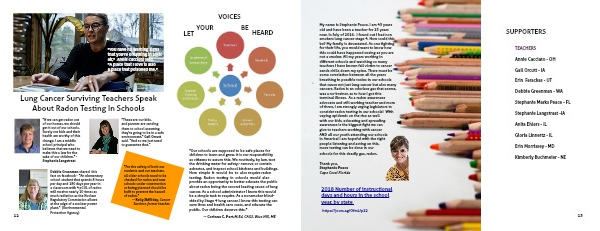 My name is Stephanie Peace. I am 45 years old and have been a teacher for 23 years now. In July of 2016. I found out I had non smokers lung cancer stage 4. How could this be? My family is devastated. As one fighting for their life, you would want to know how this could have happened seeing as you are not a smoker. All my years working in different schools and watching so many teachers I have known fall victim to cancer sends chills down my spine. There must be some correlation between all the years breathing in possible toxins in our schools that cause not just lung cancer but also many cancers. Radon is an odorless gas that seems, was a no-brainer, as to how I got this terminal illness. As a radon awareness advocate and still working teacher and mom of three, I am strongly urging legislators to consider radon testing in our schools! With vaping epidemic on the rise as well
