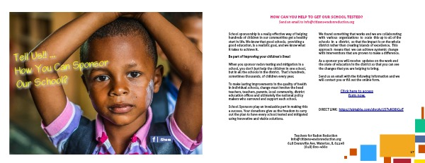 School Sponsors play an invaluable part in making this a success. Your donations give us the freedom to carry out the plan to have every school tested and mitigated using innovative and viable solutions.