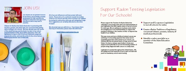 Please support the Teachers for Radon Reduction campaign to encourage state and local representatives to pass legislation that will require states to test all schools for radon gas. We are asking you to please send a letter encouraging your local representatives to support the passing of existing or the creation of bills to improve the health of our children.