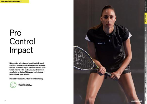 Höj prestationsförmågan och ge ett kraftfullt intryck med detta högfunktionella och miljövänliga premiumkoncept . Pro Control Impact innefattar lätta och funktionella material delvis av återvunnen polyester som ger effektiv ventilation , fukttransport och rörelsefrihet vid intensiv fysisk aktivitet .