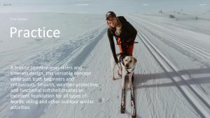 A tribute to entry-level skiers and timeless design, this versatile concept embraces both beginners and enthusiasts. Smooth, weather-protective, and functional softshell creates an excellent foundation for all types of Nordic skiing and other outdoor winter activities.