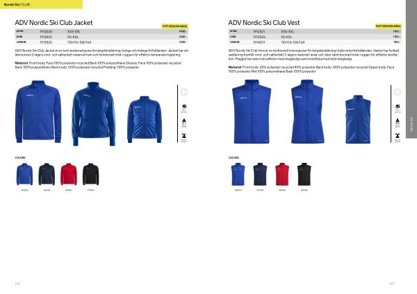 ADV Nordic Ski Club Vest är en funktionell träningsväst för längdskidåkning i kalla vinterförhållanden . Västen har kviltad vaddering framtill , vind- och vattentätt 3-lagers material i axlar och sidor samt borstad trikå i ryggen för effektiv ventilation . Plagget har även två sidfickor med dragkedja samt bröstficka med dold dragkedja .