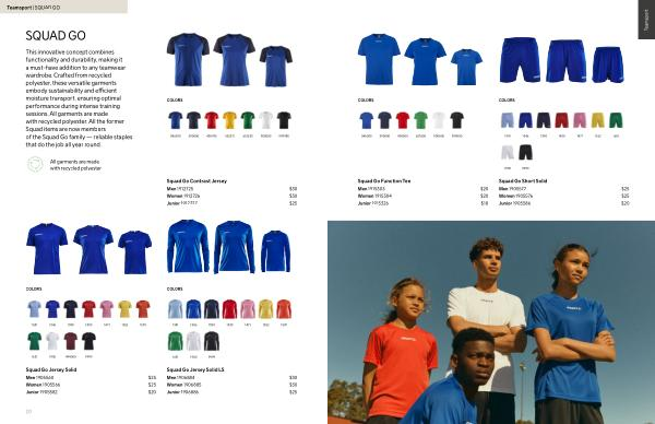 This innovative concept combines functionality and durability, making it a must-have addition to any teamwear wardrobe. Crafted from recycled polyester, these versatile garments embody sustainability and efficient moisture transport, ensuring optimal performance during intense training sessions. All garments are made with recycled polyester. All the former Squad items are now members of the Squad Go family— reliable staples that do the job all year round.