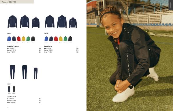 COLORS 346000390000430000552000651000999000 Squad Go Fz Jacket $ 50 $ 50 $ 45 Men 1915347 Junior 1915349 Women 1915348 COLORS 346000390000430000552000651000999000 Squad Go Hz $ 40 $ 40 $ 35 Men 1915350 Junior 1915352 Women 1915351 COLORS 390000999000 Squad Go Pant $ 40 $ 40 $ 35 Men 1915353 Junior 1915355 Women 1915354 22 Teamsport | SQUAD GO