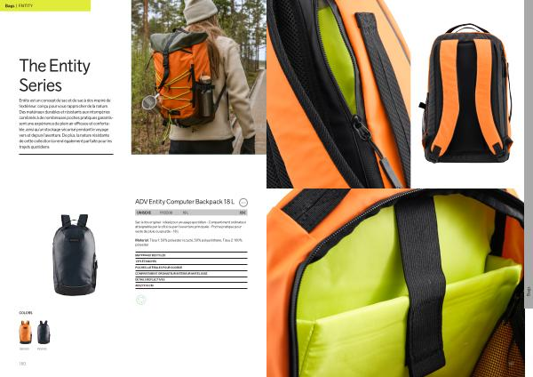 Entity est un concept de sac et de sac à dos inspiré de l ’ extérieur , conçu pour vous rapprocher de la nature . Des matériaux durables et résistants aux intempéries combinés à de nombreuses poches pratiques garantissent une expérience de plein air efficace et confortable , ainsi qu ’ un stockage sécurisé pendant le voyage vers et depuis l ’ aventure . De plus , la nature résistante de cette collection la rend également parfaite pour les trajets quotidiens .