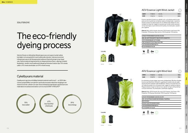 Solution Dye är en miljövänlig infärgningsprocess som sparar mycket vatten , kemikalier och energi jämfört med traditionella metoder . I denna process sker infärgningen genom att färgpigmentet adderas till spinnlösningen innan tyget vävs . Detta innebär att pigmentet blir en integrerad del av fibern , vilket ger utmärkt färgfasthet . Jämfört med traditionell infärgning förbrukar Solution Dye 75 % mindre vatten , 67 % mindre kemikalier och 39 % mindre energi .