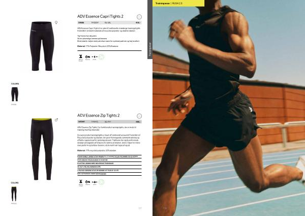 ADV Essence Capri Tights 2 er yderst funktionelle, knælange træningstights fremstillet i et blødt materiale af recycled polyester og elastisk elastan.