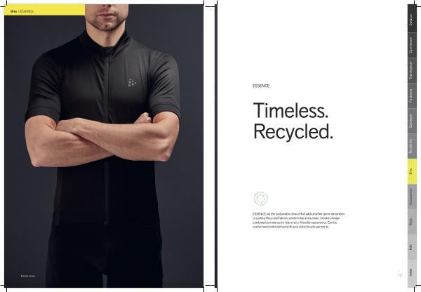 ESSENCE are the sustainable choice that adds another green dimension to cycling . Recycled fabrics , solution dye and a clean , timeless design combined to make every ride an eco-friendlier experience . Can be easily mixed and matched with your other bicycle garments .