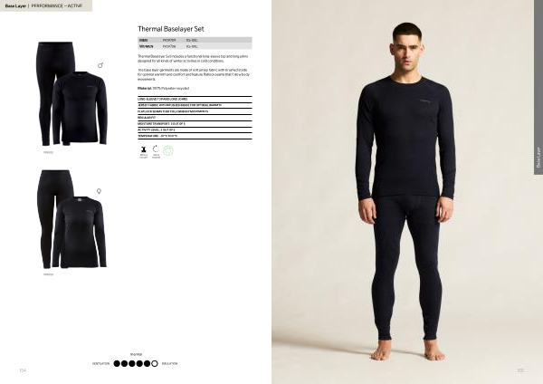 The base layer garments are made of soft jersey fabric with brushed inside for optimal warmth and comfort and feature flatlock seams that follow body movements.