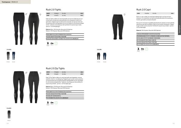 Rush 2.0 Capri är lätta och stretchiga knälånga tights som ger bra fukttransport och rörelsefrihet vid intensiva fysiska aktiviteter som exempelvis friidrott, gymnastik och beachvolleyboll.