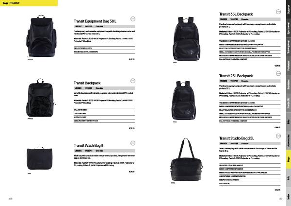 Contemporary and versatile equipment bag with durable polyester outer and reinforced PU-coated inner . 38 L .