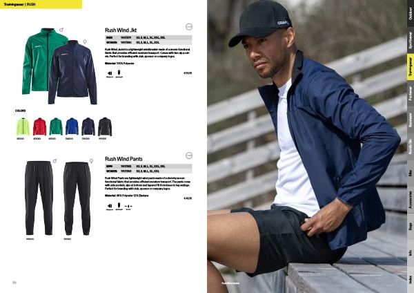 Rush Wind Jacket is a lightweight windbreaker made of a woven functional fabric that provides efficient moisture transport . Comes with two zip pockets . Perfect for branding with club , sponsor or company logos .
