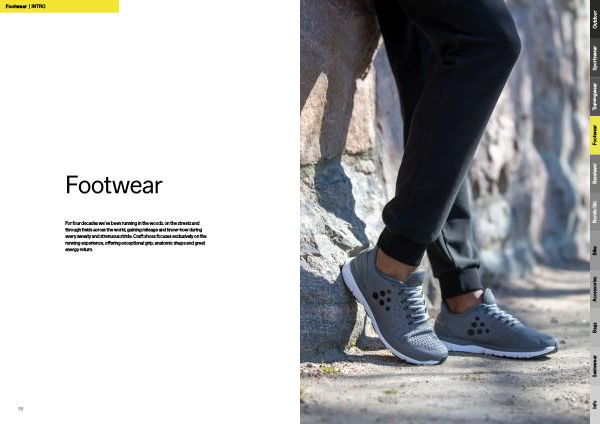 For four decades we ’ ve been running in the woods , on the streets and through fields across the world , gaining mileage and know-how during every sweaty and strenuous stride . Craft shoes focuses exclusively on the running experience , offering exceptional grip , anatomic shape and great energy return .