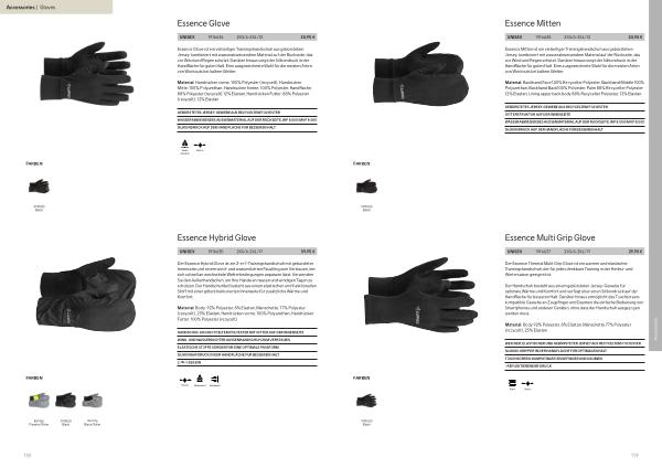 Material: Backhand Face 100 % Recycelter Polyester, Backhand Middle 100 % Polyurethan, Backhand Back100 % Polyester, Palm 88 % Recycelter Polyester 12 % Elastan, Lining upper back body 88 % Recycelter Polyester, 12 % Elastan