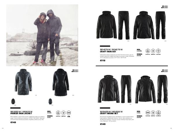 Erinomaisesti hengittävä ja kevyt sadetakki ja -housut suojaavat tehokkaasti sateelta. Säädettävät hihansuut (Velcro). Kaksi takataskua ja