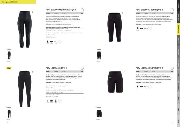 ADV Essence Capri Tights 2 ovat erittäin tekniset capritrikoot , jotka on valmistettu pehmeästä kierrätetystä polyesterista sekä elastaanista . Trikoissa on leveä vyötärönauha säädettävällä kiristysnauhalla optimaalisen istuvuuden ja mukavuuden takaamiseksi intensiivisen harjoittelun aikana .