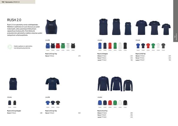 COLORS 346000390000430000651000900000999000 COLORS 346000390000430000651000900000999000 COLORS 346000390000430000651000900000999000 Rush 2.0 Singlet 22 € 22 € 18 € Miehet 1914661 Lapset 1914663 Naiset 1914662 Rush 2.0 LS Tee 28 € 28 € 22 € Miehet 1914658 Lapset 1914660 Naiset 1914659 Rush 2.0 SS Tee 22 € 22 € 18 € Miehet 1914655 Lapset 1914657 Naiset 1914656 T & F Gymnastics