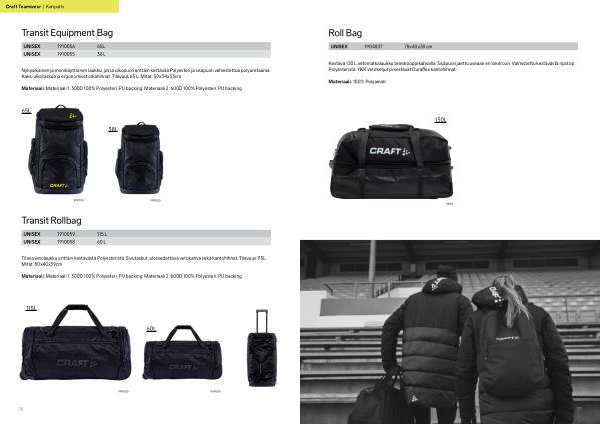 Materiaali : Materiaali 1 : 300D 100 % Polyesteri , PU backing . Materiaali 2 : 600D 100 % Polyesteri , PU backing