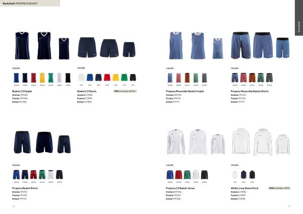 NEW | Available AW26 COLORS 346000430000651000900000999000 Progress LS Basket Jersey Homme 1911106 Enfant 1911108 Femme 1911107 COLORS 346900430900575999651900999900 Progress Reversible Basket Singlet Homme 1911109 Enfant 1911111 Femme 1911110 COLORS 346900430900575999651900999900 Progress Reversible Basket Shorts Homme 1911115 Enfant 1911117 Femme 1911116 COLORS 100039009990 Ability Long Sleeve Hood Homme C17896 Enfant C17898 Femme C17897 37 Basketball