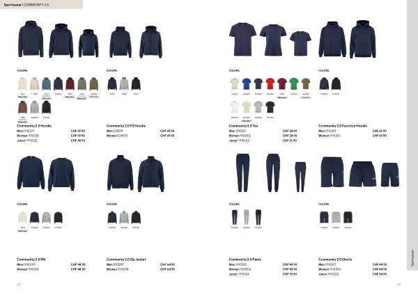 COLORS 390000950000999000 Community 2.0 Pants CHF 49.90 CHF 49.90 CHF 39.90 Men 1915305 Junior 1915324 Women 1915306 COLORS 390000950000999000 Community 2.0 Shorts CHF 44.90 CHF 44.90 CHF 34.90 Men 1915307 Junior 1915325 Women 1915308 COLORS 390000999000 Community 2.0 Function Hoodie CHF 69.90 CHF 69.90 Men 1915309 Women 1915310 COLORS 214000346000390000430000651000664000 Community 2.0 Tee CHF 24.90 CHF 24.90 CHF 21.90 900000905000950000999000 4940 Men 1915301 Junior 1915323 Women 1915302 New color New color EXIT AW26 85 Sportswear