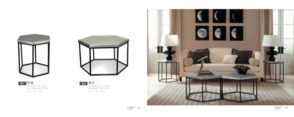 $91 192-09 Hexagon End Table Aluminium and Metal 25’’ x 25’’ x 22’’ $101 192-02 Hexagon Cktl Table Aluminium and Metal 32’’ x 32’’ x 20’’ 119 By EKH
