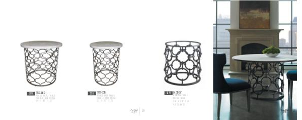 $121 T222-050 Round Cktl Table Marble and Metal 59’’ x 30’’ x 22’’ $98 T222-030 Round End Table Marble and Metal 22’’ x 22’’ x 25’’ 129 By EKH