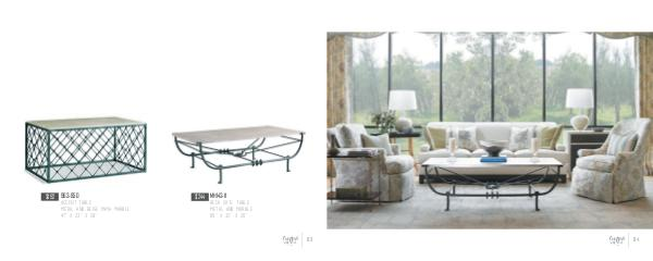 $192 963-850 Accent Table Metal and Beige Maya Marble 47’’ x 23’’ x 29’’ $244 MH143-11 Reck Cktl Table Metal and Marble 60’’ x 32’’ x 20’’ 83 By EKH