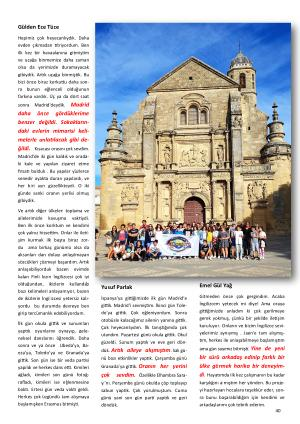 Hepimiz çok heyecanlıydık . Daha evden çıkmadan titriyordum . Ben ilk kez bir havaalanına gitmiştim ve uçağa binmemize daha zaman olsa da yerimizde duramayacak gibiydik . Artık uçağa binmiştik . Bu bizi önce biraz korkuttu daha sonra bunun eğlenceli olduğunun farkına vardık . Üç ya da dört saat sonra Madrid ' deydik . Madrid daha önce gördüklerime benzer değildi . Sokaklarındaki evlerin mimarisi kelimelerle anlatılacak gibi değildi . Kısacası orasını çok sevdim . Madrid ' de iki gün kaldık ve oradaki kale ve yapıları ziyaret etme fırsatı bulduk . Bu yapılar yüzlerce senedir ayakta duran yapılardı , ve her biri ayrı güzellikteydi . O iki günde sanki oranın yerlisi olmuş gibiydik .