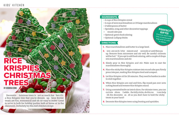Decorating Christmas trees is just as much fun when it’ s a Rice Krispies tree that you’ re dressing up. These festive treats are fun, economical and oh-so-easy to make! Great to serve in bulk for holiday parties both at home or in the classroom. Definitely try this kid’ s kitchen recipe.