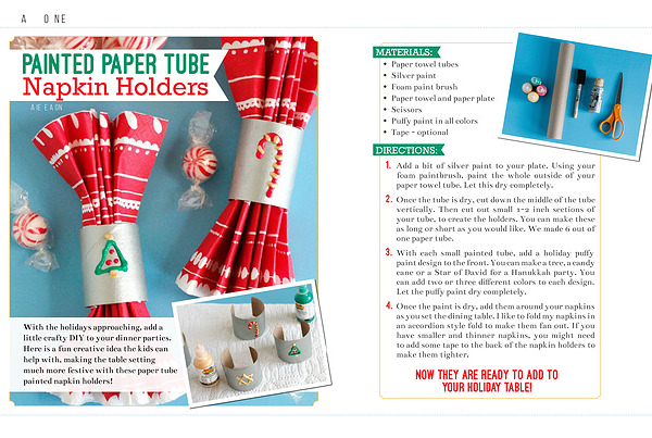 With the holidays approaching, add a little crafty DIY to your dinner parties. Here is a fun creative idea the kids can help with, making the table setting much more festive with these paper tube painted napkin holders!