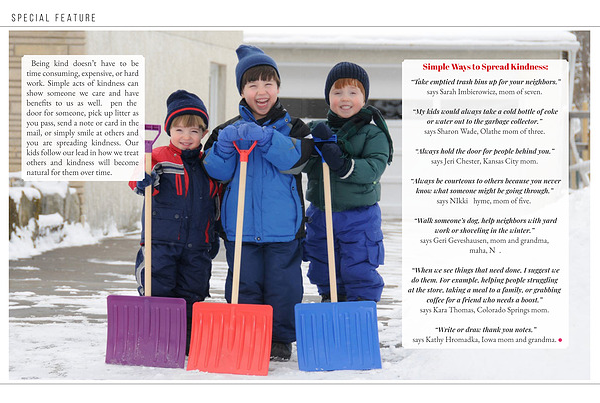 “ Walk someone’ s dog, help neighbors with yard work or shoveling in the winter.” says Geri Geveshausen, mom and grandma, Omaha, NE.