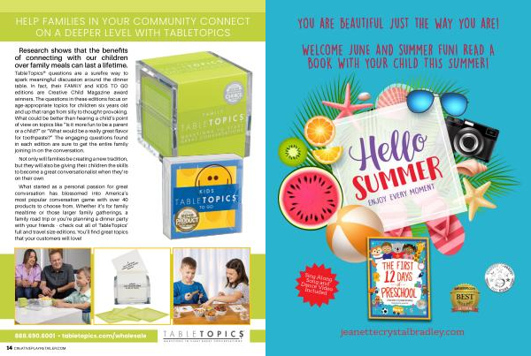 TableTopics ® questions are a surefire way to spark meaningful discussion around the dinner table . In fact , their FAMILY and KIDS TO GO editions are Creative Child Magazine award winners . The questions in these editions focus on age-appropriate topics for children six years old and up that range from silly to thought-provoking . What could be better than hearing a child ’ s point of view on topics like “ Is it more fun to be a parent or a child ?” or “ What would be a really great flavor for toothpaste ?” The engaging questions found in each edition are sure to get the entire family joining in on the conversation .