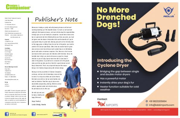 Websites: www.creature-companions.in it brings upon us for our friendly fur companion. I would like to share some