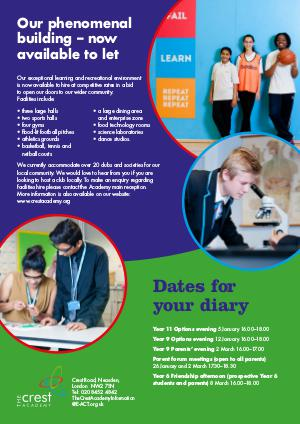 Year 11 Options evening 5 January 16.00 – 18.00 Year 9 Options evening 12 January 16.00 – 18.00 Year 9 Parents’ evening 2 March 16.00 – 17.00