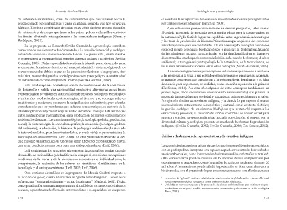 es en pensar en la inseparabilidad entre los sistemas sociales y ecológicos (SevillaGuzmán, 2006). Dicha especialidad cuestiona la idea de que el desarrollo rural