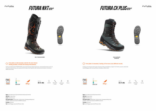 Step into a new dimension with FUTURA NXT GTX ®. A unique solution featuring an integrated upper gaiter, ensuring elevated protection up to the calf, along with fast and precise lacing, and an anatomical fit from the leg to the foot. Experience comfort, performance and innovation in this distinctive, dynamic and secure boot.