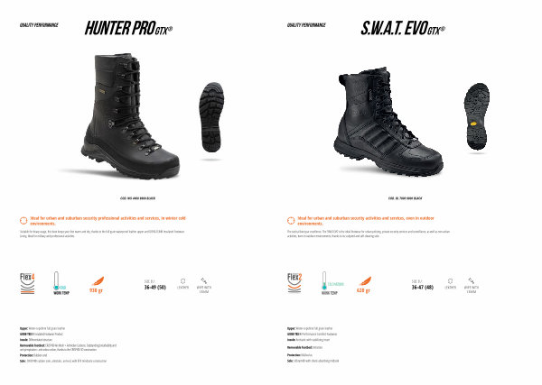 The tactical boot par excellence. The SWAT EVO is the ideal footwear for urban policing, private security services and surveillance, as well as non-urban activities, even in outdoor environments, thanks to its sculpted and self-cleaning sole.