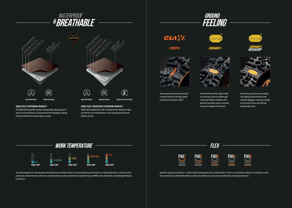 The GORE-TEX ® lining offers excellent waterproofing, allowing drops of water not to enter the boot, and at the same time breathability, allowing moisture molecules from sweat vapour to escape.