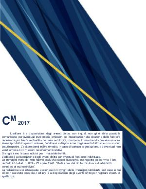 L’ editore è a disposizione degli aventi diritto, con i quali non gli è stato possibile comunicare, per eventuali involontarie omissioni od inesattezze nella citazione delle fonti e / o delle immagini. Nell’ eventualità che passi antologici, citazioni o illustrazioni di competenza altrui siano riprodotti in questo volume, l’ editore è a disposizione degli aventi diritto che non si sono potuti reperire. L’ editore porrà inoltre rimedio, in caso di cortese segnalazione, ad eventuali non voluti errori e / od omissioni nei riferimenti relativi. Si ringraziano le case editrici per il materiale fornito. L ' editore è a disposizione degli aventi diritto per eventuali fonti non individuate. Le immagini tratte dal web hanno esclusivo scopo illustrativo, nel rispetto del comma 1-bis dell’ art. 70 della l. n. 633 – 22 aprile 1941.“ Protezione del diritto d’ autore e di altri diritti connessi al suo esercizio”. La redazione si è interessata a ottenere il copyright delle immagini pubblicate; nel caso in cui ciò non sia stato possibile, l’ editore è a disposizione degli aventi diritto per regolare eventuali spettanze.