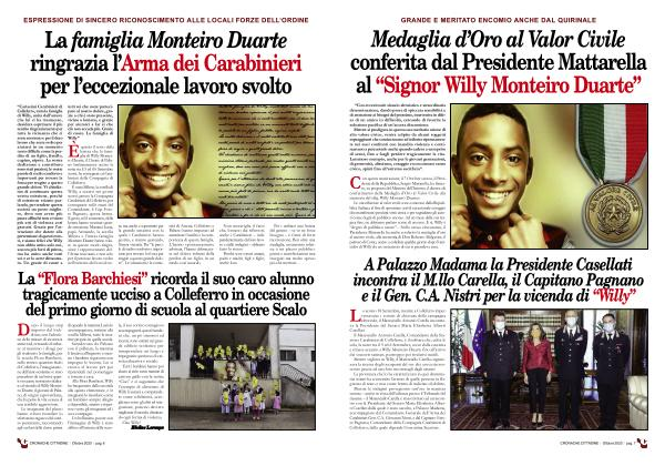 “ Carissimi Carabinieri di Colleferro , tutta la famiglia di Willy , unita dall ’ amore che lui ci ha trasmesso , desidera esprimere il più sentito ringraziamento per tutta la vicinanza che ci avete mostrato e per il duro lavoro che avete svolto per aiutarci in un momento tanto difficile come la perdita di un figlio , fratello , cugino , nipote . La vostra dedizione e contributo sono stati preziosi , le vostre parole di molto conforto e importanti per trovare la forza per reagire a questo grande dolore . Vi chiediamo di continuare questa vostra missione , perché di missione stiamo parlando , per rendere questa società un posto migliore , dove non avere più paura affinché non ci siano più atti di violenza così gratuiti . Grazie per l ’ attenzione che darete alla prevenzione di questi eventi , e siamo felici che Willy non abbia unito solo noi , ancora più forti di prima , ma ha unito anche tutti voi e ce lo avete dimostrato . Un grazie di cuore a
